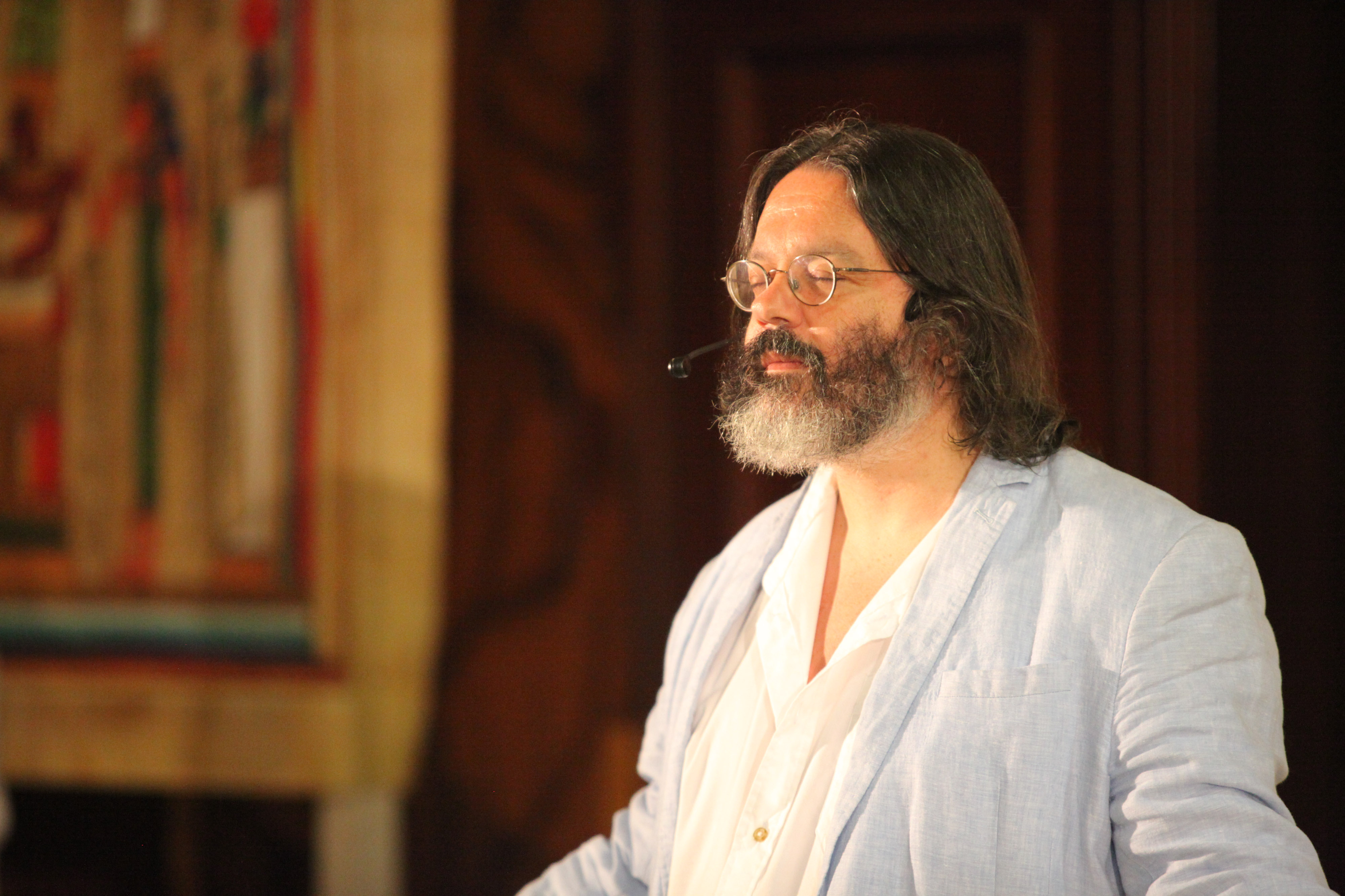 Olivier Manitara en prière pendant la célébration de Michaël en Espagne - 2014